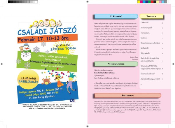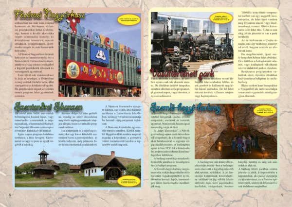 Oldalpár, kisfüzet, magazin jellegű munkák indesignban elkészítve, photoshoppal kiegészítve (képek).